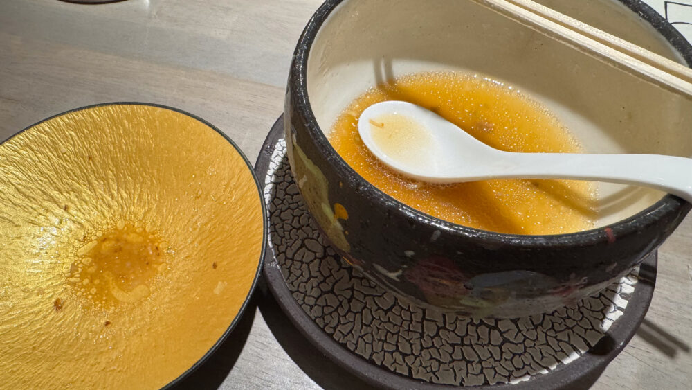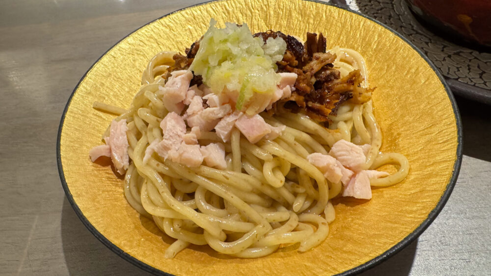 ▲麺を食べ終えたら和え玉を出してもらいました。金の皿がフォトジェニック。
