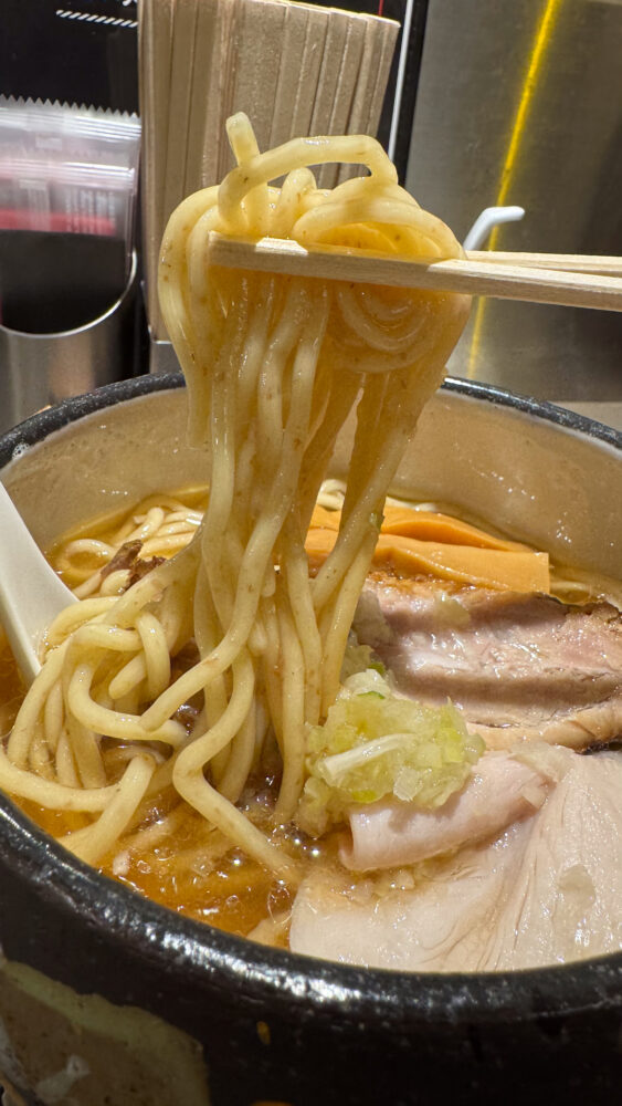 ▲麺は中太でプリっと食感。見た目的に全粒粉配合っぽいですね。加水率高めですすり心地も良き。