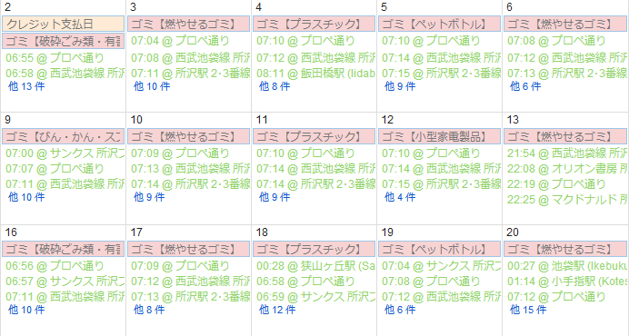 ”月”表示で見るのも月内に何時にどこに行っていたのか分かりやすくて良い感じです(・∀・)