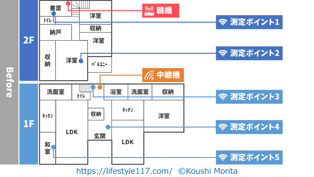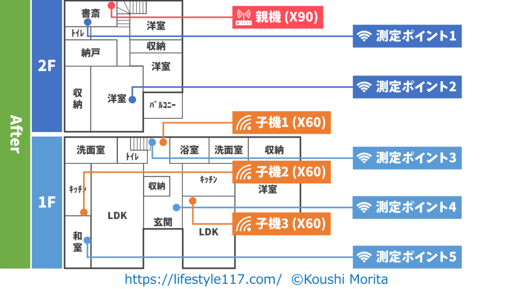 私の自宅の間取りとWi-Fi環境は以下の通りです。