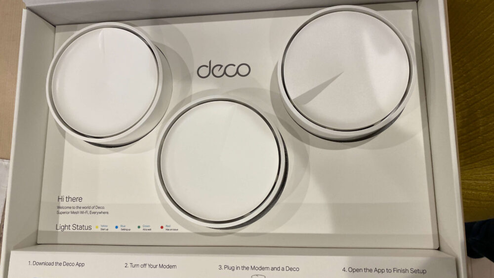 十分に吟味した結果、コスパが良さそうなTP-LinkのDecoシリーズをチョイスしメッシュWi-Fi環境を構築。
