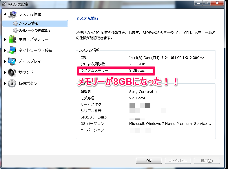 VAIOのLシリーズ225FJのメモリ増設手順!