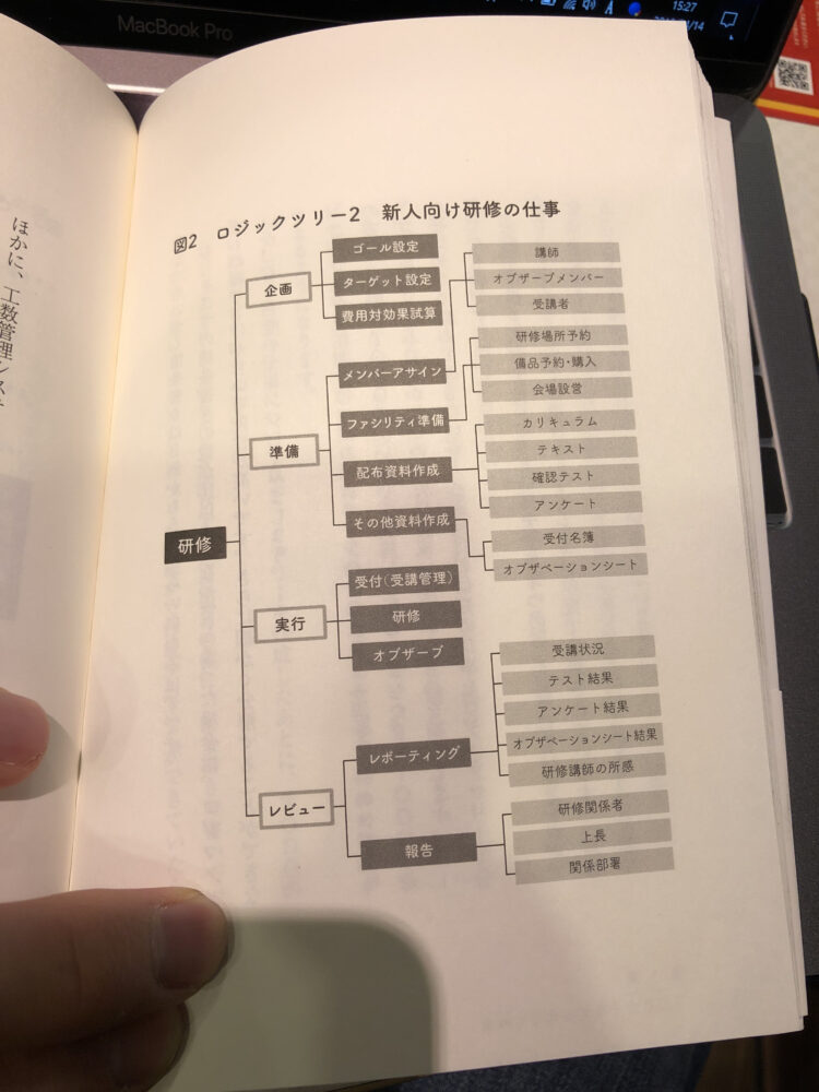 本書の中で、私の本業でよくプランニングする新人スタッフ向けの研修をロジックツリー化した内容も掲載いただきました!
