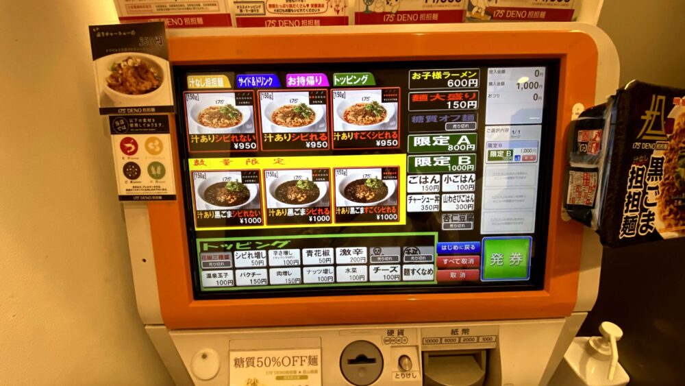 ▲デジタルな食券機で注文します。目当ての175郎は「限定B」です。