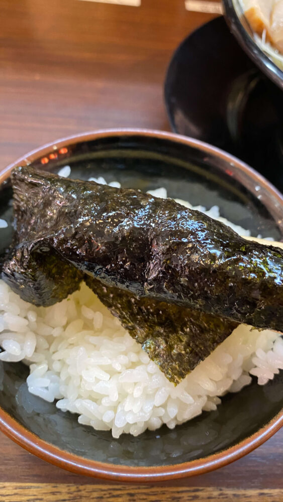 ▲海苔はスープに浸し、ライスを巻いて食べるのは最高に旨し。