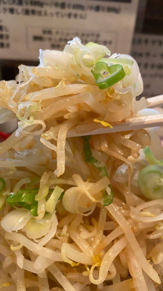 完全に見た目は二郎系というビジュアル!野菜の上の小ネギが地味に嬉しい。