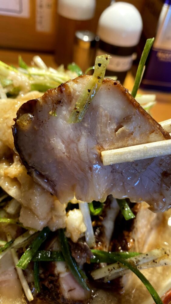 アブラとネギも一緒に食べるとパンチが強くて非常に美味しいです。