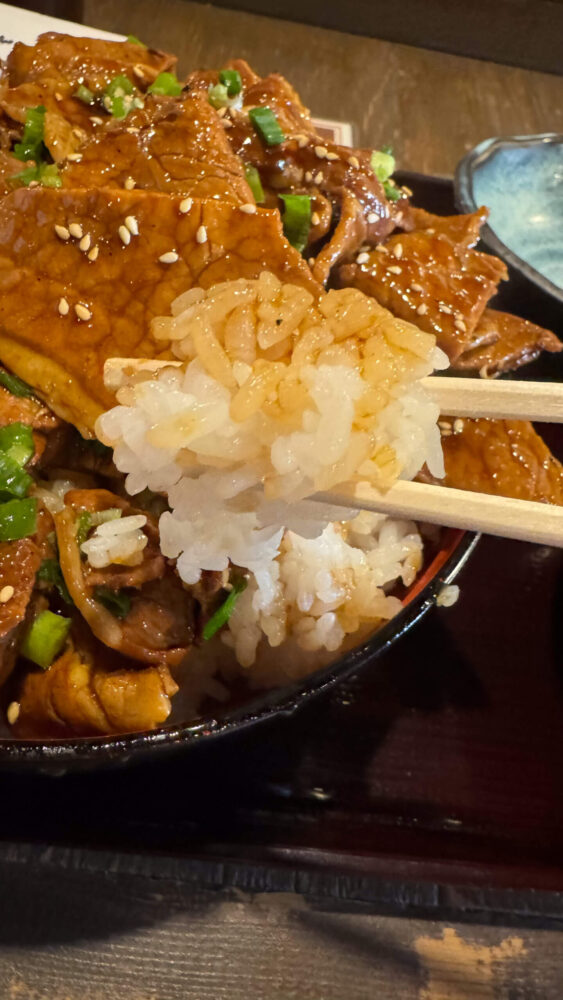 紅とん 田町店の豚丼ロース メガ盛は、炭火の香ばしさと甘辛なタレで焼かれた豚ロースがごはんと相性バッチリな一杯でした!