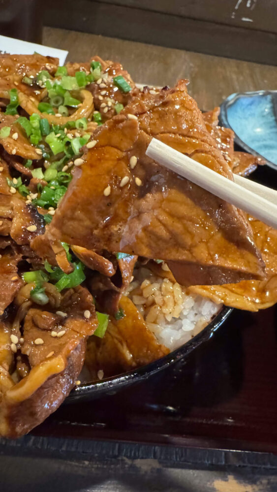 花びらのように盛り付けられた豚丼がフォトジェニック!タレの香りも食欲をそそります!