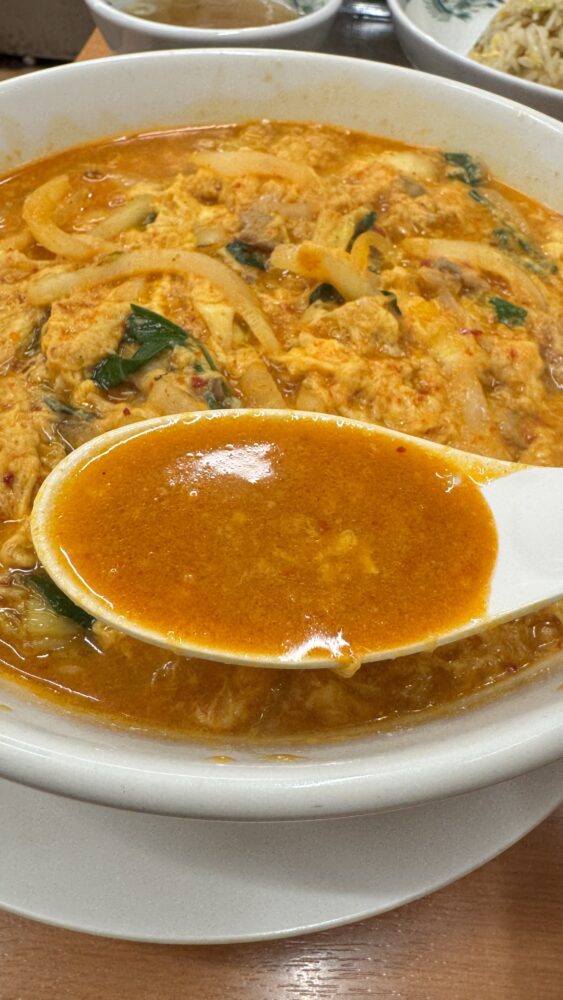 ▲ピリ辛なチゲ味噌のスープが辛旨。毎年恋しくなる味わいですね。チャーハンにも合う。