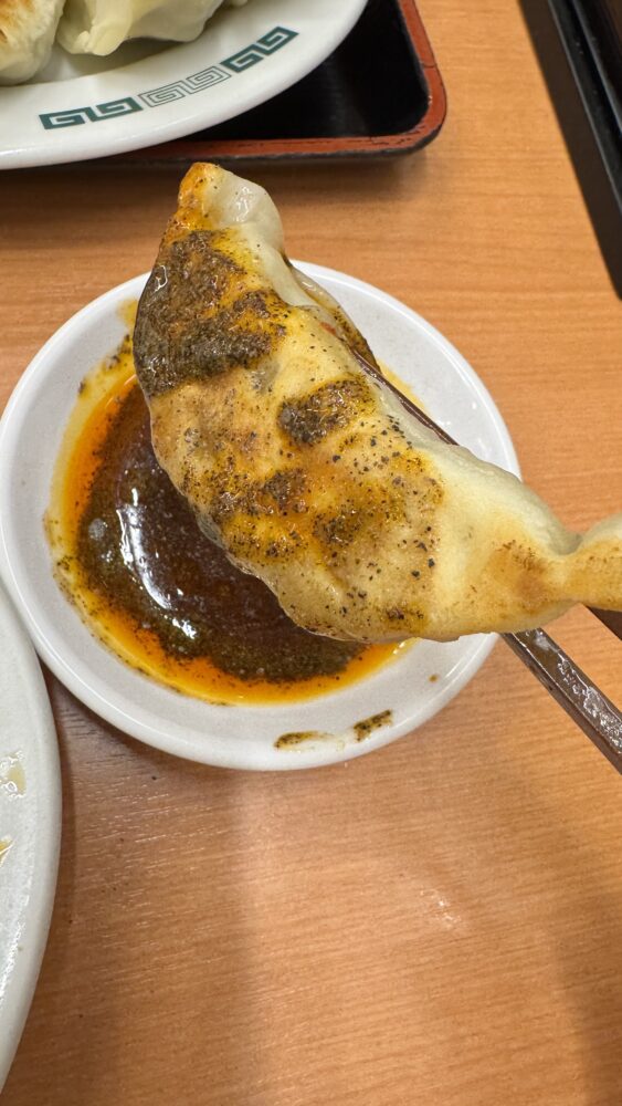 ▲この日はジャンクに醤油+ラー油+お酢+ブラックペッパーで餃子を食べます。めちゃ旨。