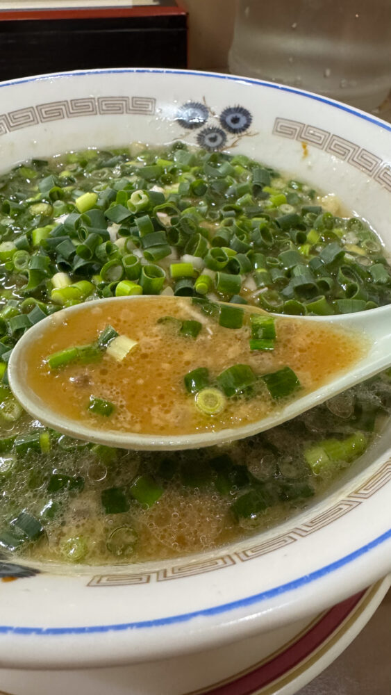 ▲スープは、濃厚な豚骨醤油。ネギが必ず含まれるので抜け感は清涼感あって飽きさせない工夫がすごい。