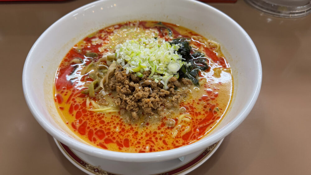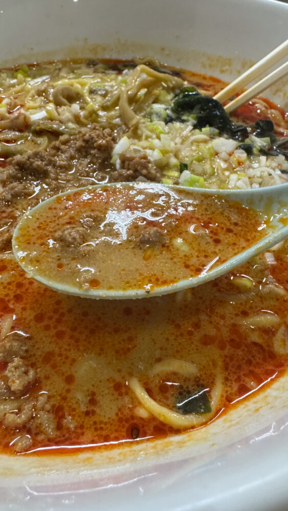 タンタンメンが着丼!具沢山でラー油が多めなスープが美味しそう!