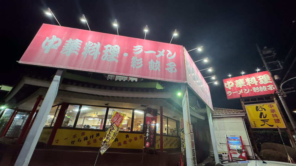 豚肉の生姜焼き丼が逆パネル詐欺で有名な近場の中華料理系のデカ盛り店「中華料理 ぼん天 東村山店」。