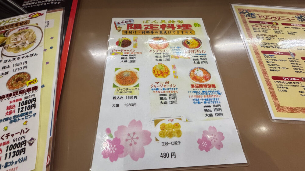 今のところ、ぼん天で頼んだ麺類・ご飯もの・サイドメニューいずれも外れがなく、どれも美味しいのがすごいです。