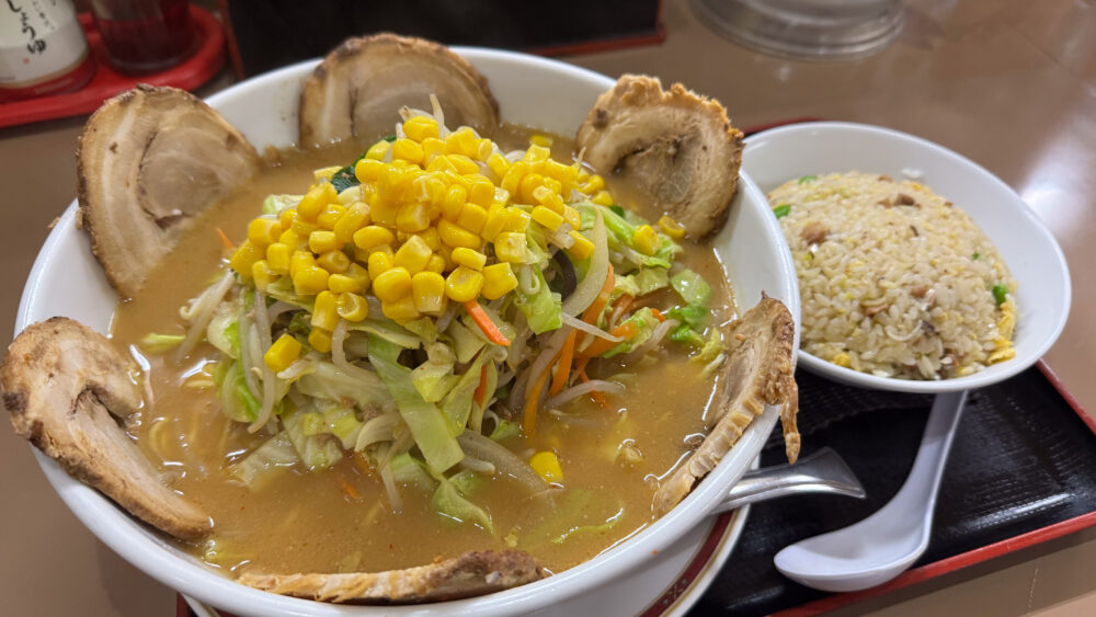 「特味噌(チャーシュー入り味噌ラーメン)+大盛り+ハーフチャーハン」を実食!