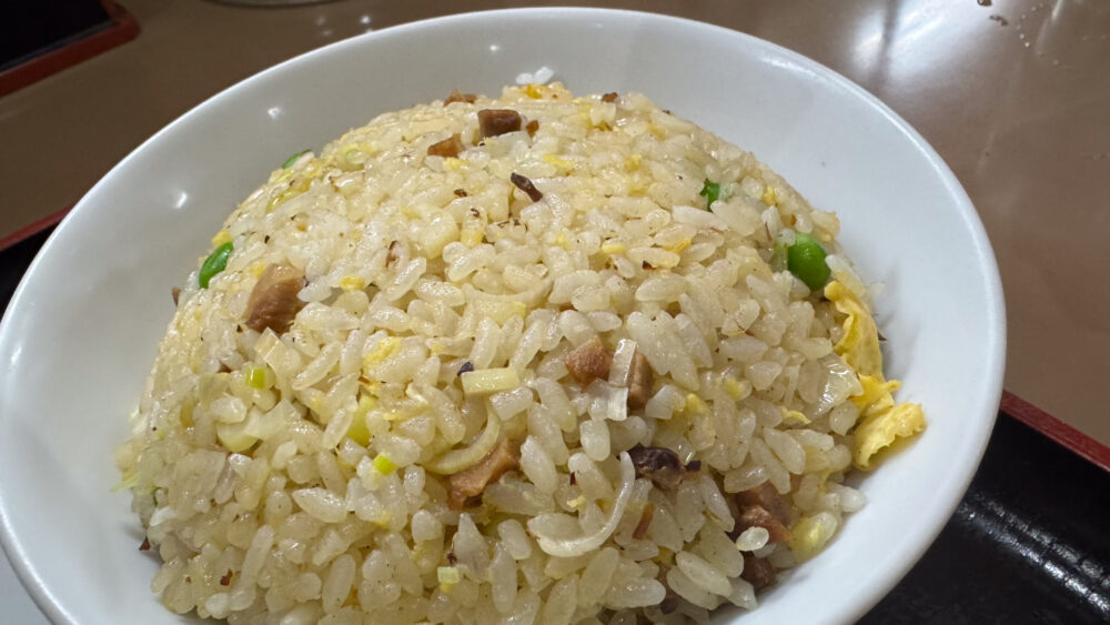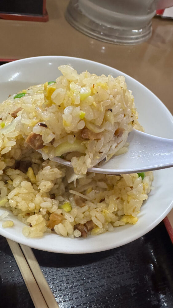 ハーフチャーハンも角切りチャーシューがふんだんに入っていて食べ応え抜群。