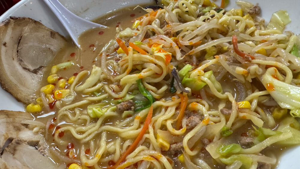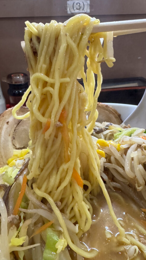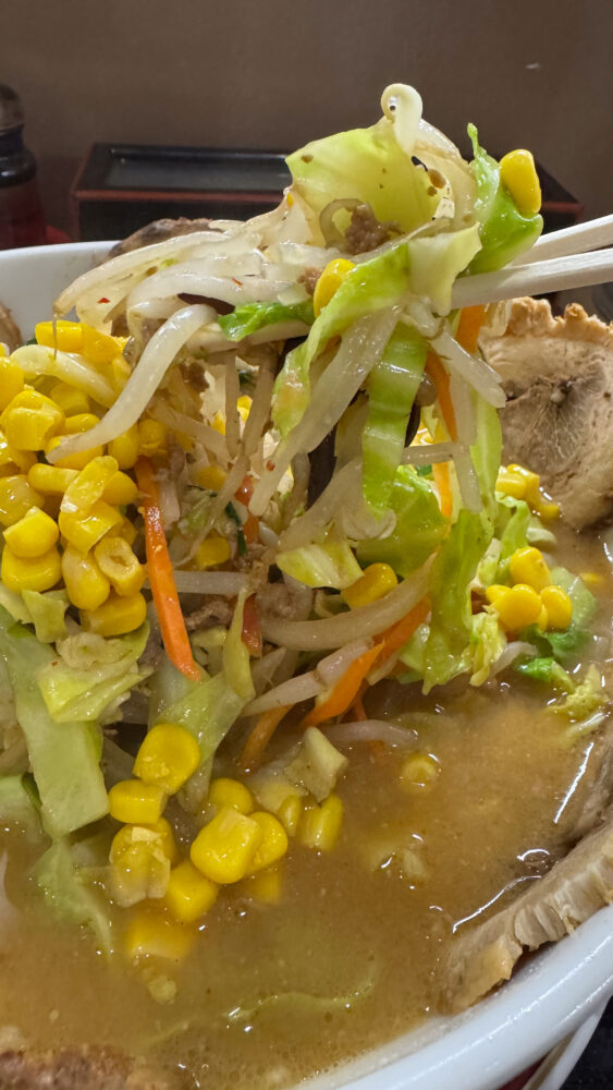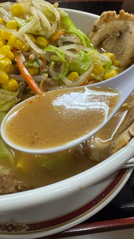 ▲スープは濃いめの味噌。野菜量も多いので良いバランス。