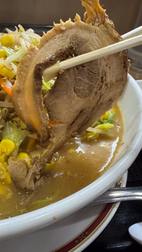 ぼん天の特味噌は、ホロっとした6枚のチャーシューに、ひき肉入りの野菜、濃厚な味噌スープ、プリっとした中細麺が美味しかったです!