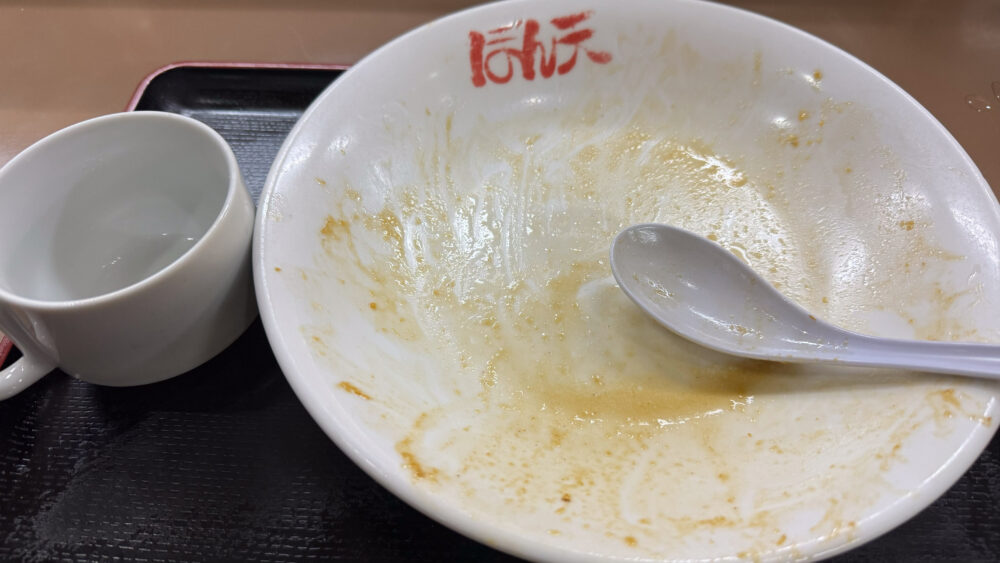 ▲途中、卓上のラー油で味変。ピリ辛で終盤もペースを崩さずに美味しく食べ進められました。
