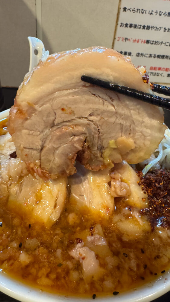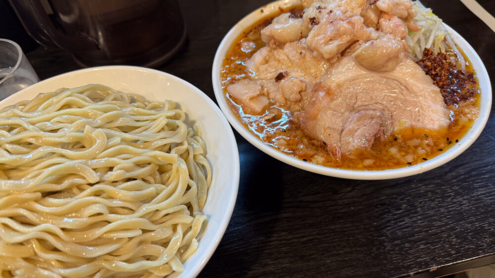 「つけ麺豚4枚(ヤサイアブラカラメ辛味)+大盛」を実食!