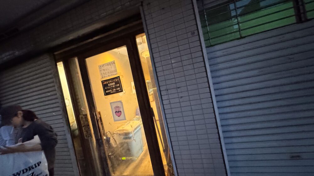 ▲半分シャッターが降りていて、パッと見でどこがお店か分かりにくいです。良く見ると豚のロゴと営業中の札がありますね。