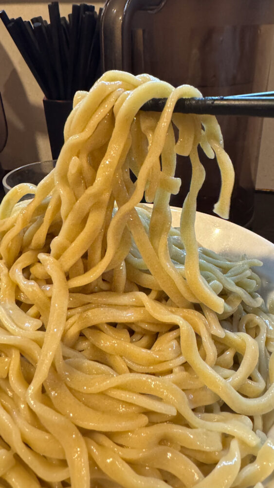 ▲濃厚なつけ汁に麺を投入。麺も強いので、濃厚なつけ汁とのバランスが良く美味。