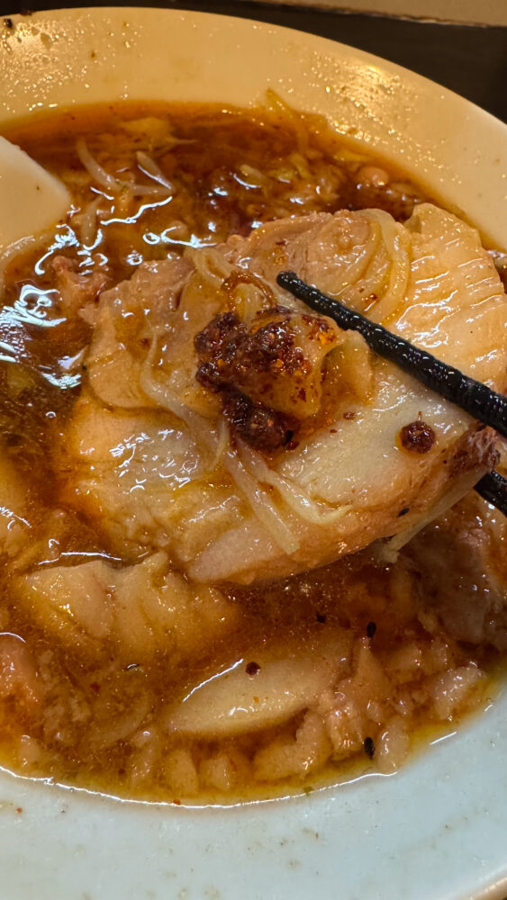 ▲豚に辛味を付けて辛豚にして味変。豚の脂身と辛味の相性が良くて辛旨。