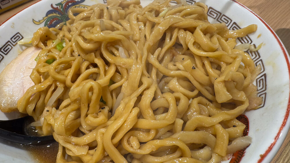 ▲麺は平打ち気味。ラーメンの時よりもモチっと感が増した感じ。カラカラにしたのでかなり濃厚で脳天直撃な旨さ。
