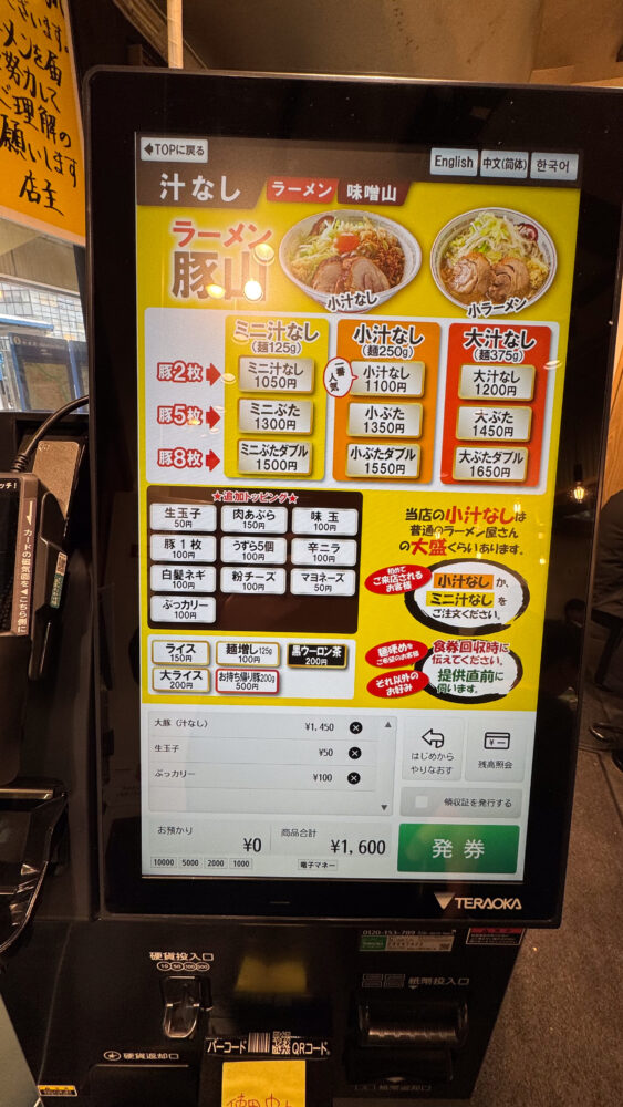 「ラーメン豚山 武蔵小杉店」までのアクセスと注文方法