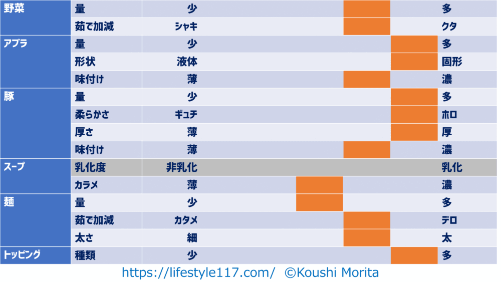 - 背アブラ(標準、アブラ、アブラマシマシ)
