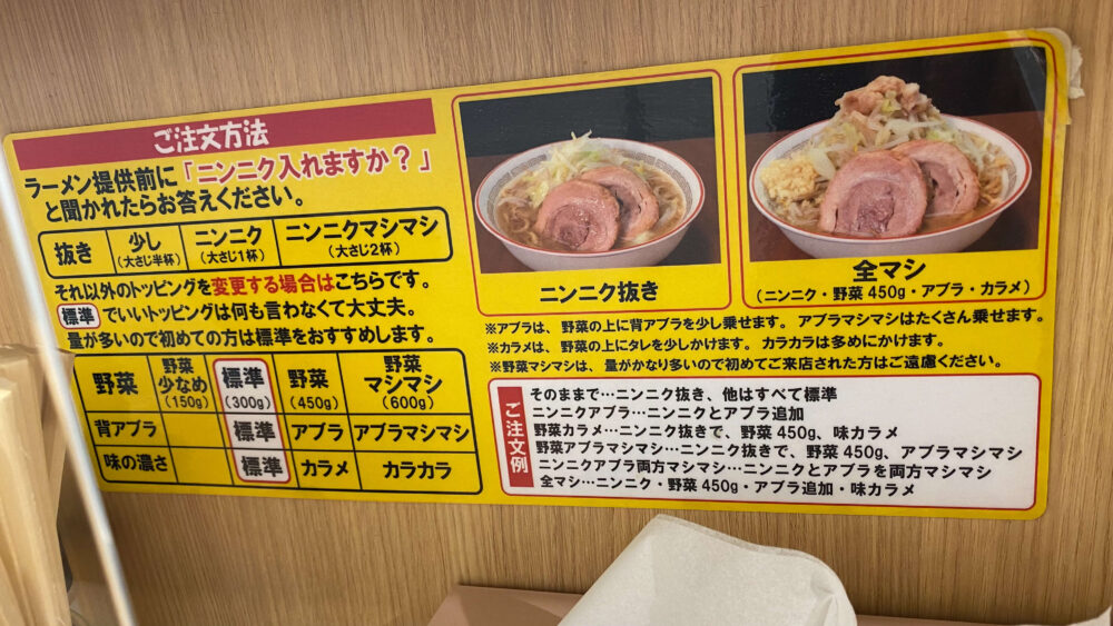 - ニンニク(少し、ニンニク、ニンニクマシマシ)