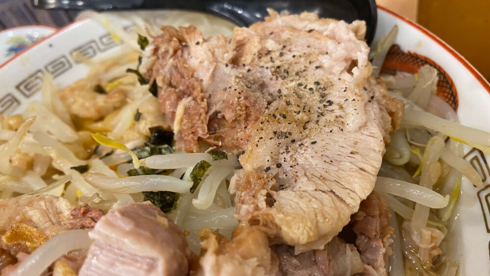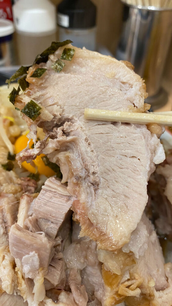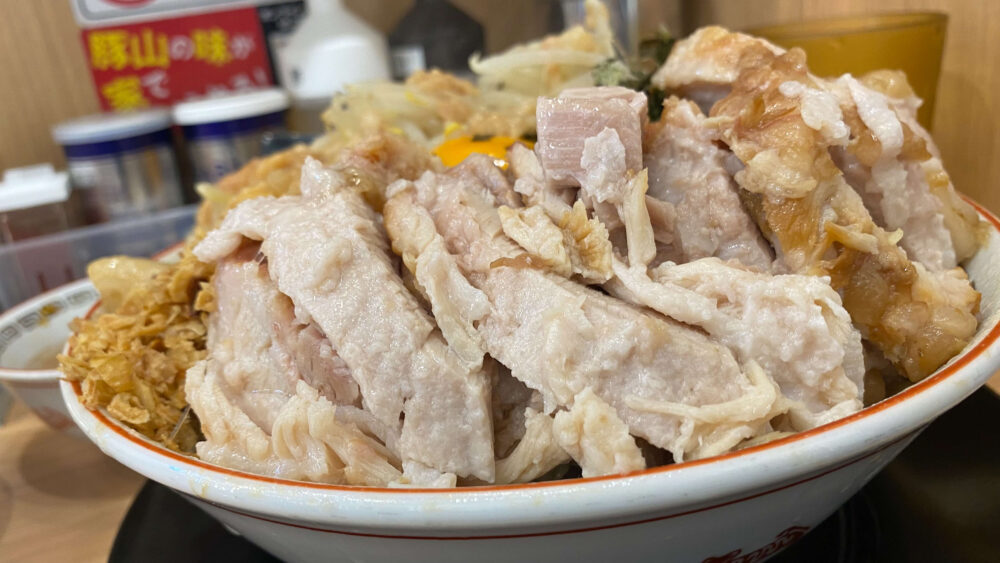 特殊な訓練を受けていないと、麺に辿り着く前に腹パン必至なので、豚を増す際は麺や野菜を減らすなどの調整はした方が良いでしょう。