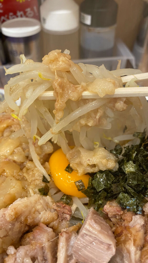 「汁なし大ぶたダブル+生玉子+肉かすあぶら」を実食!