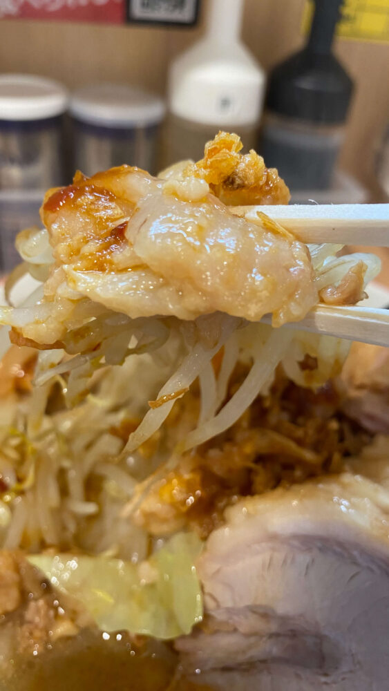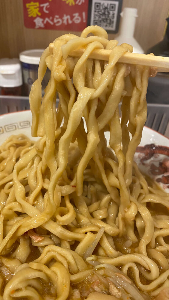 野菜の上に味噌だれとザクザク辣油があることで、二郎ライクのビジュアルが味噌ラーメンの雰囲気をまとっています!