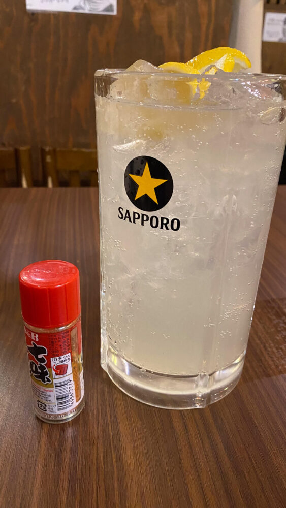今回は若鶏の唐揚げバカ+ピリ辛角煮込み+オニオンスライス+生レモンサワーバカ+ウーロンハイを注文しました!