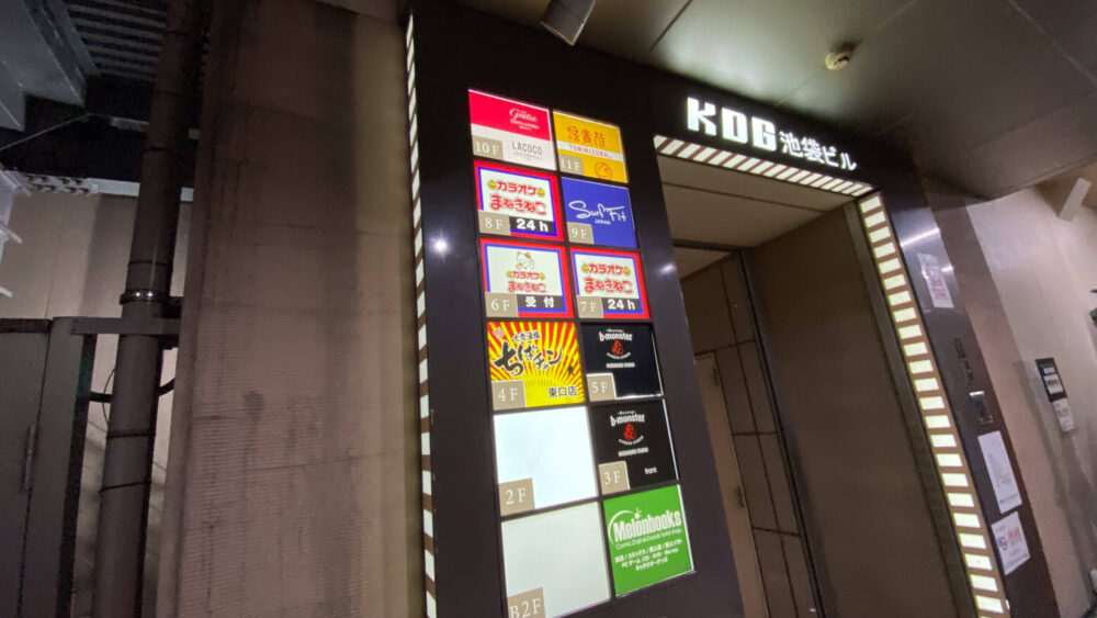 ▲池袋駅東口から見てドン・キホーテの裏側にあるKDG池袋ビルの4Fにあります。