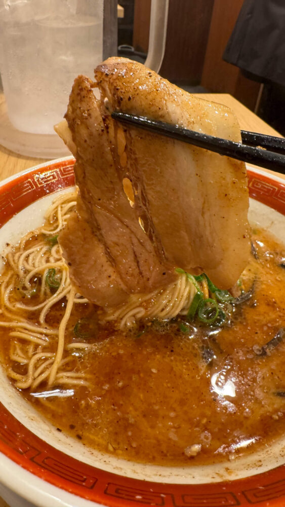 ▲チャーシューは、薄めですが結構大判。チャーシューにもマー油が絡んでジャンクな旨さ。