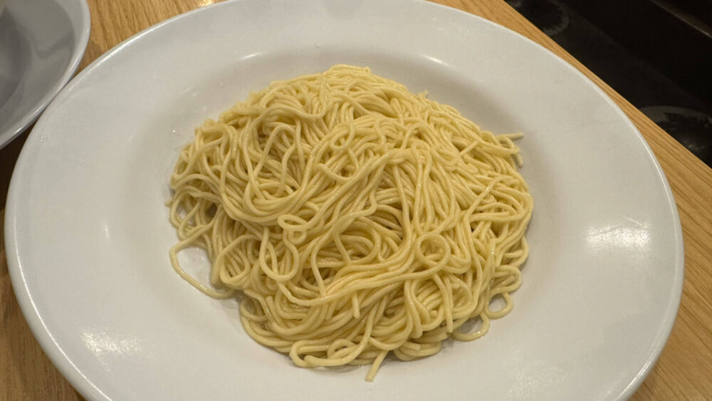 ▲あっという間に麺がなくなったので替玉を注文。麺の硬さは「普通」。