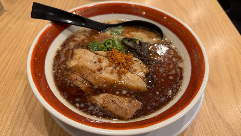 博多 黒は、クリーミーなとんこつスープにビターなニンニクの風味がプラスされ、よりジャンクで美味しかったです!