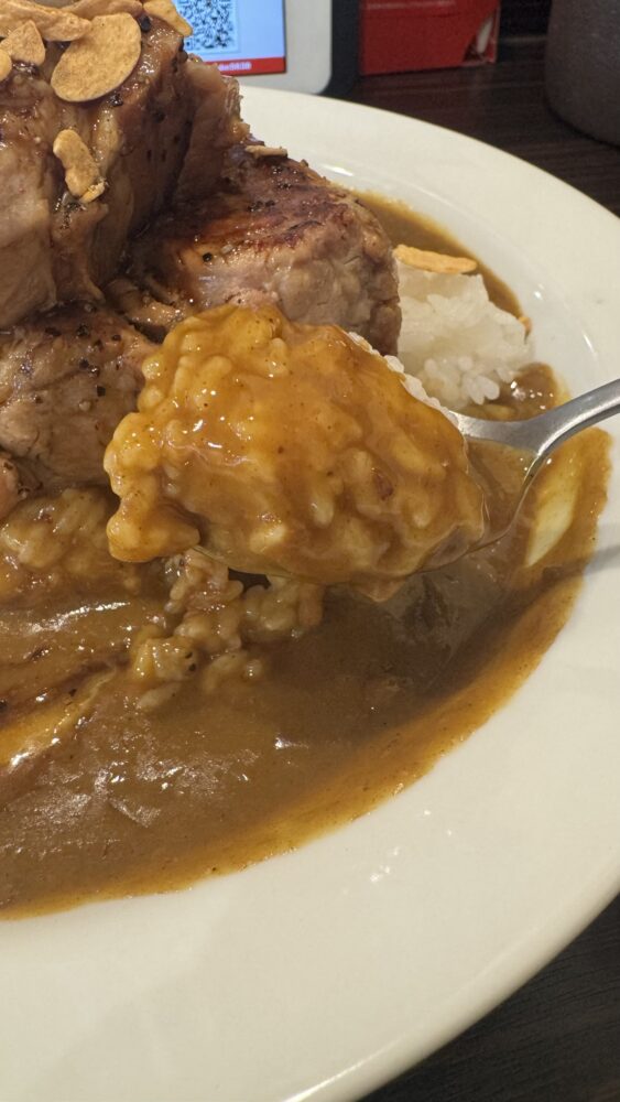 ▲カレーは王道の美味しさ。ホロ肉の甘辛い醤油ソースが混ざったところも良い味変に。