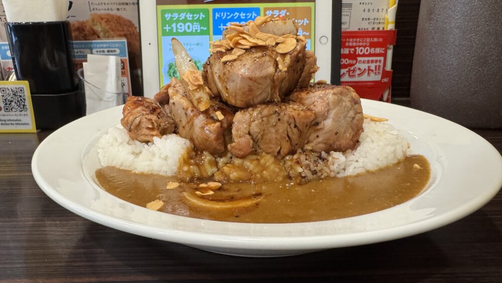 「ホロ肉ドカンとガーリック&ペッパーカレー肉塊LEVEL4(辛さ普通)+ライス500g」を実食!