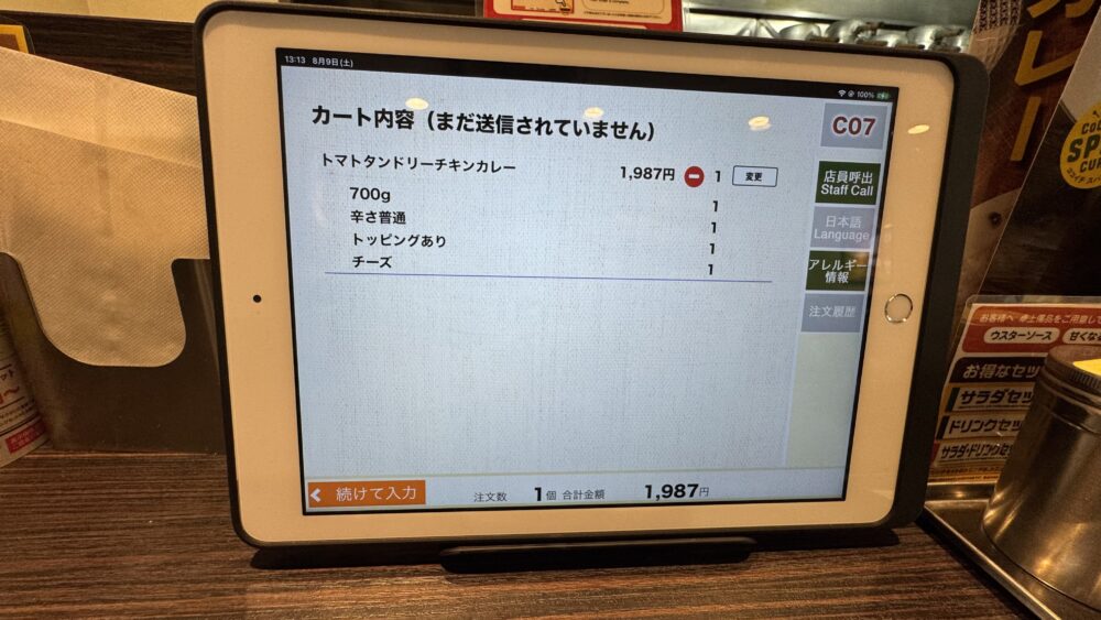 ▲タブレットから注文します。この店舗もタブレットになりましたね。