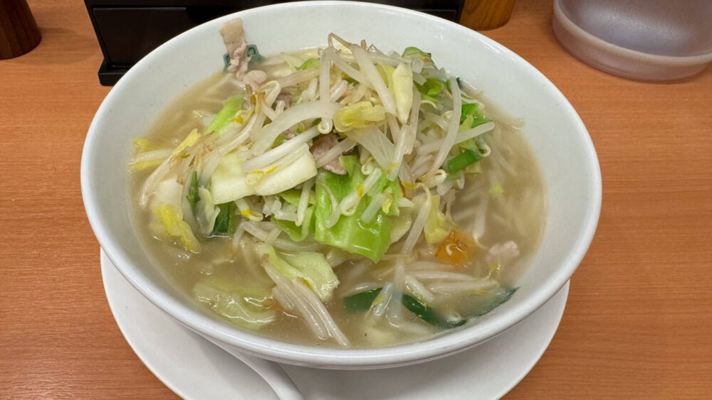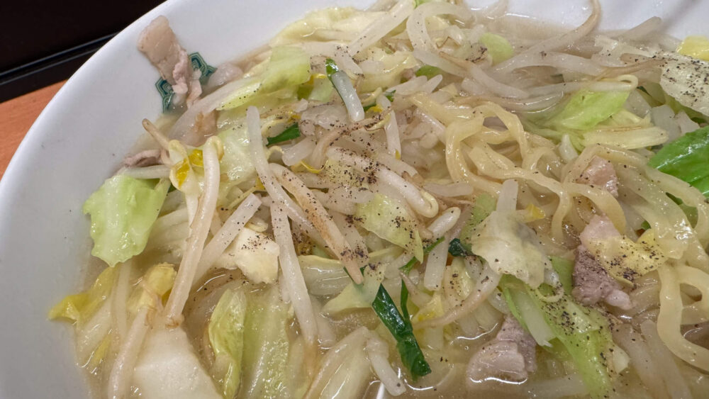 どっさりと350gの野菜が盛られたタンメン!おそらく個人的に日高屋で一番食べた麺類メニュー。