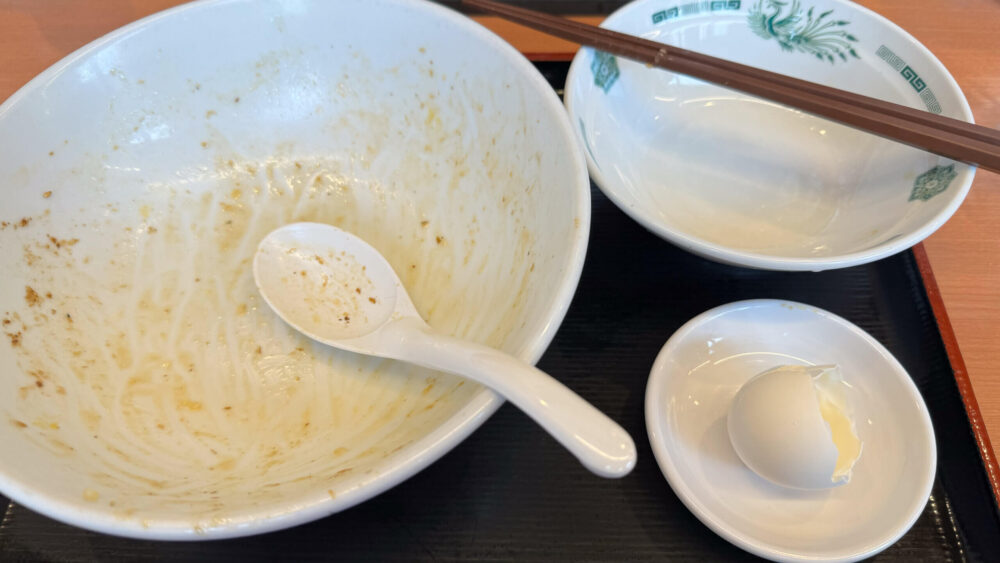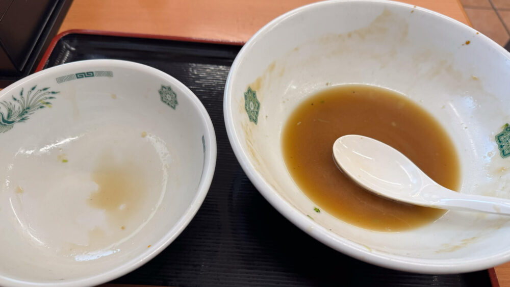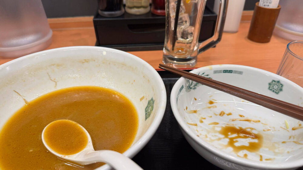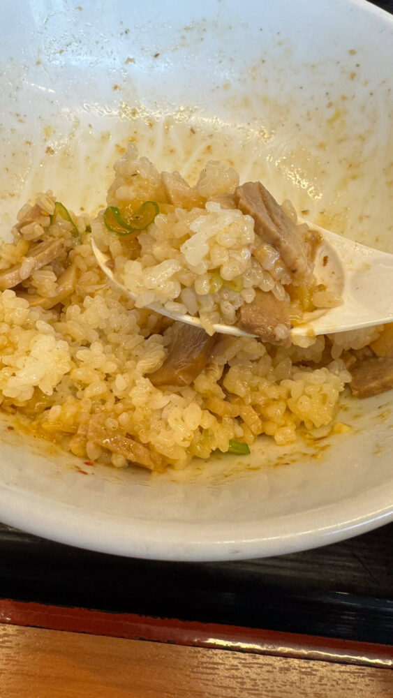 ▲麺を食べ終えた後に残った具材とタレがもったいなかったので、半ライスを追加注文。