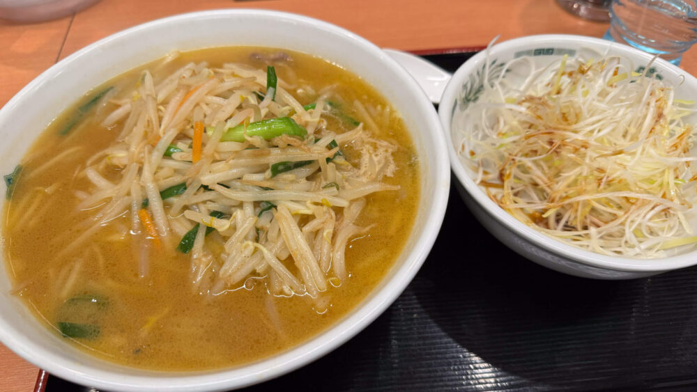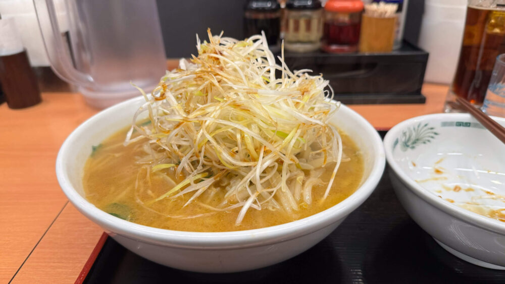 そうこうしているうちにネギタワー味噌ラーメンが着丼!ネギタワーの部分は別皿提供でした。