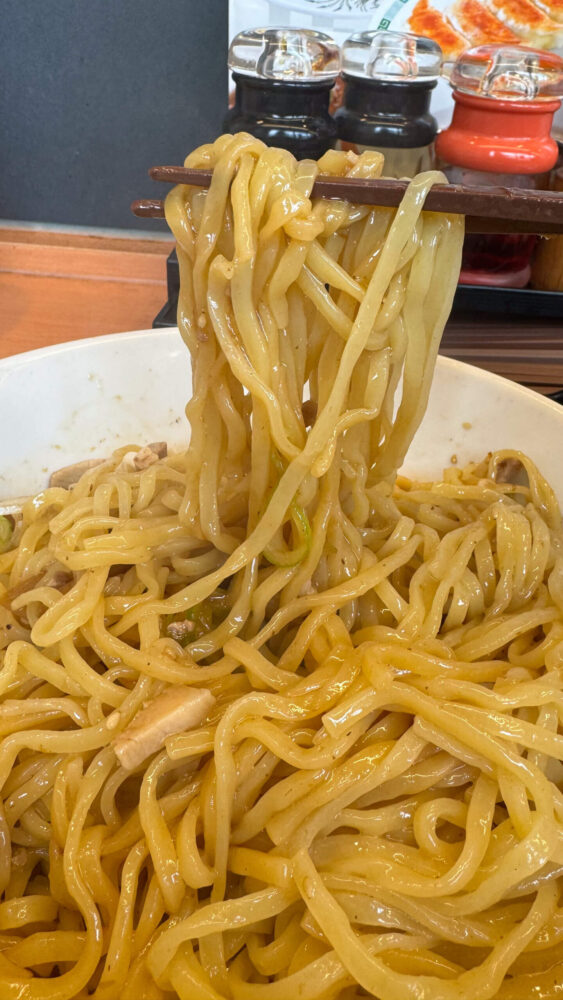 ▲日高屋特製の麺。ちょうどよいモッチリ感でツルっとしたのど越しがスープにマッチしています。