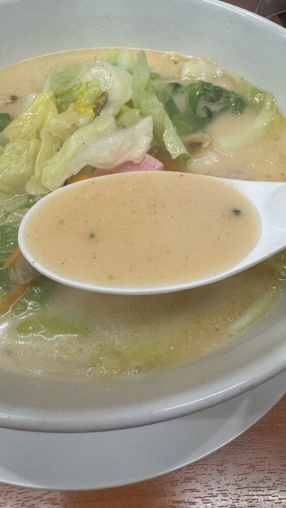 ▲スープは魚介の旨味強め。ほっとする味わいです。