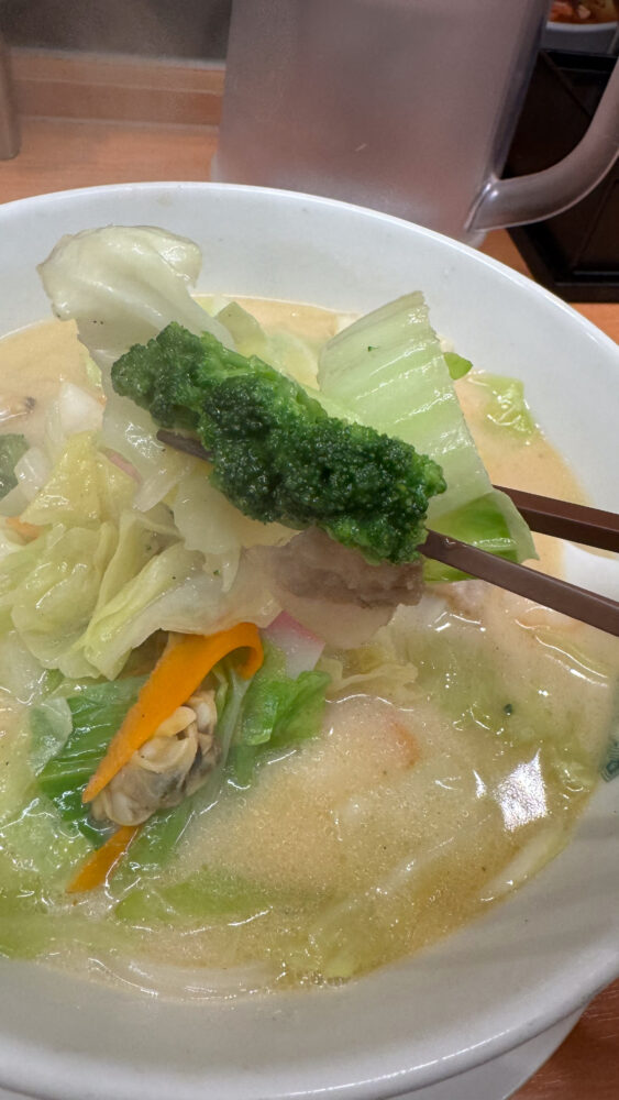 日高ちゃんぽんが着丼!たっぷりの野菜や魚介に加え、乳白色のスープが美味しそうな一杯!