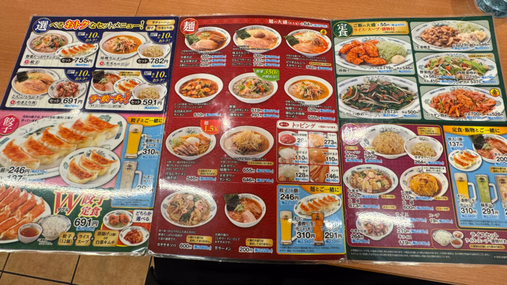 前回は野菜たっぷりタンメン、五目あんかけラーメン、ネギタワー味噌ラーメン、汁なしラーメン(油そば)を食した様子をレポートしました。